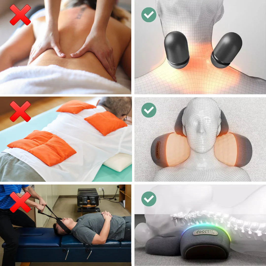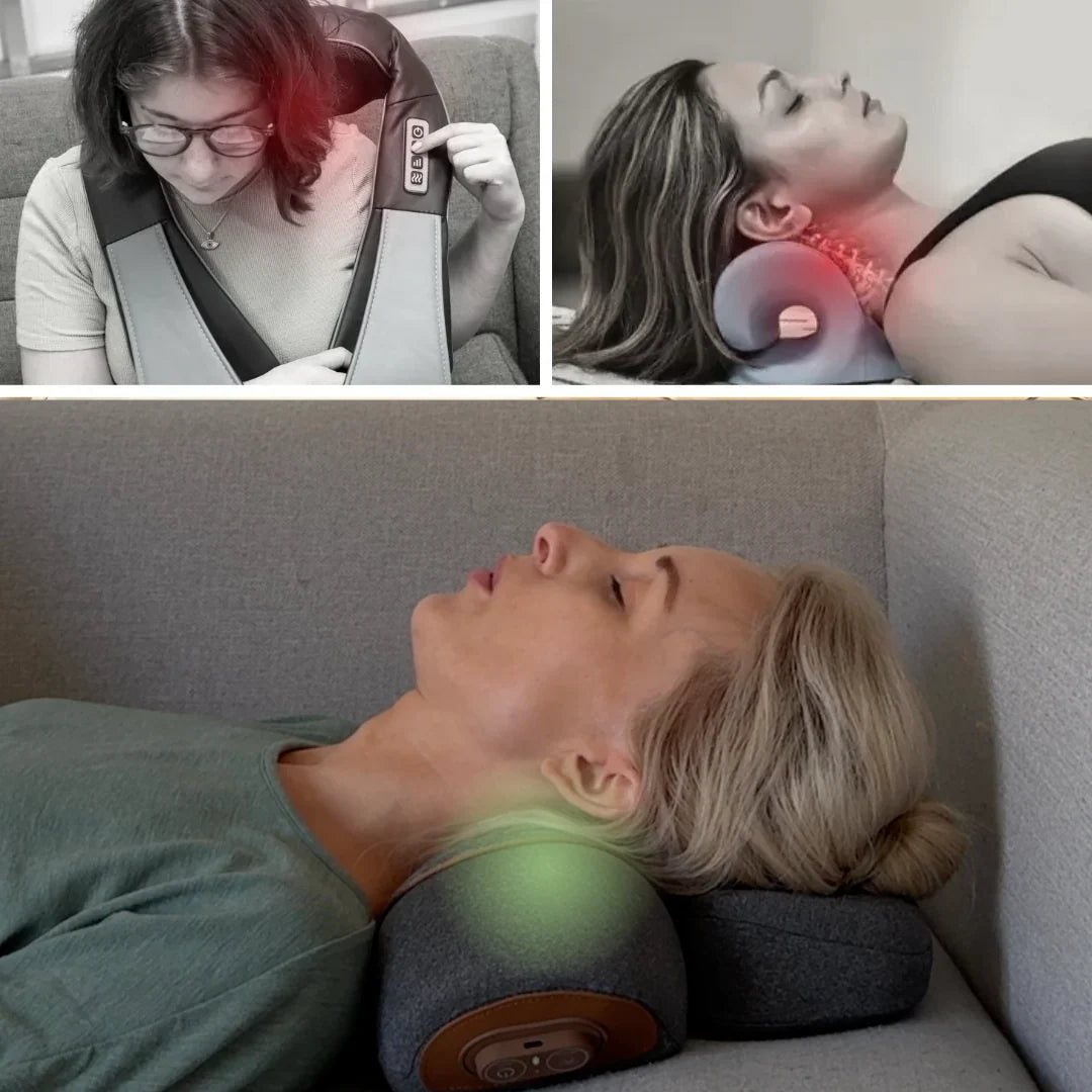OrtoRelax łączy w sobie terapeutyczny masaż, leczniczą terapię cieplną i trakcję szyjną — wszystko w jednym, poręcznym urządzeniu, które możesz stosować samodzielnie w domu.